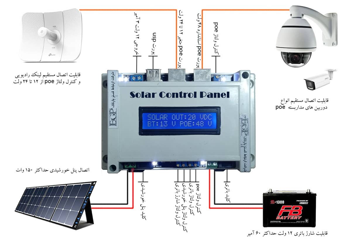 دستگاه کنترل شارژ پنل خورشیدی با توجه به نیازمندی یکی از شرکت های بزرگ راه آهن کشور طراحی و تولید شده است. با توجه به نیازمندی کارفرما در 2 مدل اقتصادی و پیشرفته تولید شده است.